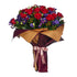 Sin duda el más impactante , bouquet de rosas rojas, lirios azul y lisianthus morado