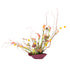 Estilo Nageire; Diseño mas relajado y espontaneo, los tallos de las flores se mantiene largos, reflejando la belleza en cada elemento que se utiliza.